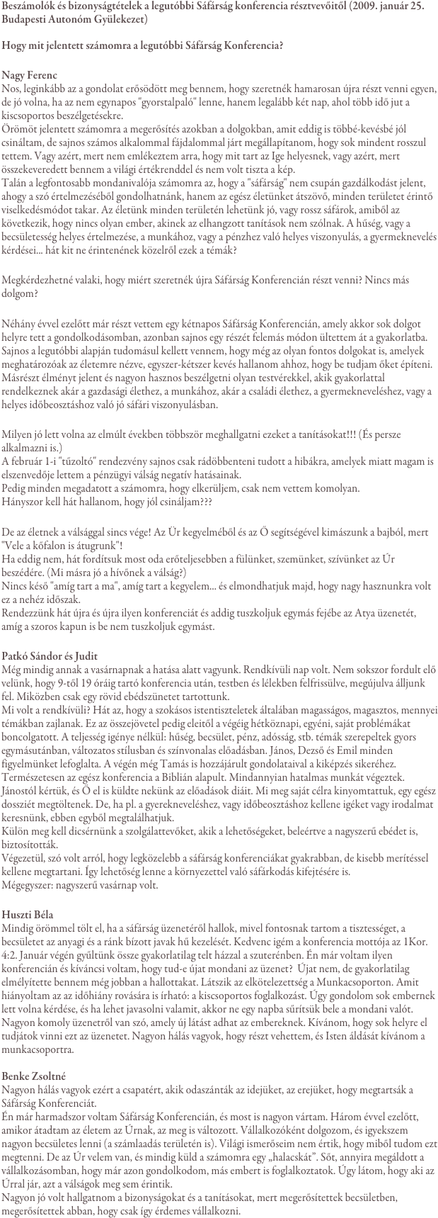 Nagyon örülök, hogy részt vehettem ezen a konferencián, ahol kipróbált, istenfélő, hűséges emberek szolgálatán keresztül megismerhettem Isten akaratát a sáfársággal kapcsolatban.